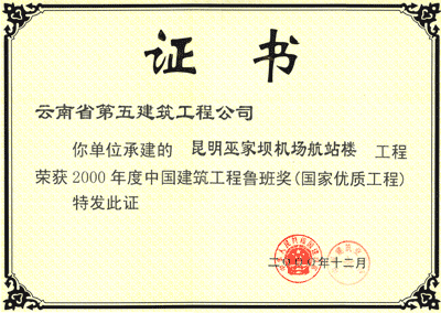機(jī)場魯班獎狀