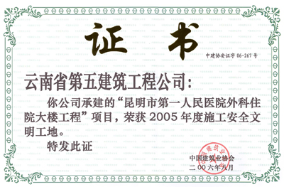 昆明市第一人民醫(yī)院外科住院大樓—2005年度“AAA級安全文明標(biāo)準(zhǔn)化誠信工地”